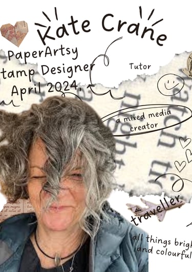 Having a teaching background, she is a fabulous person to learn from, and who wouldn't love to learn more about her quirky mixed-media layers and striking colour combinations? Kate is equally at home with paints & inks or alcohol inks and infusions. Whatever she makes, there are sure to be elements in all her layers that resonate with you, from bright and cheerful marks through to infusion tickled images, or backgrounds made from stencils dripping in colour.